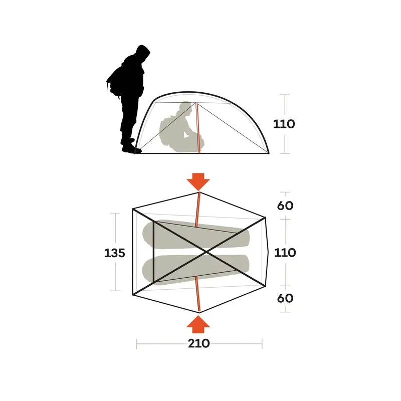 Težina: minimalna – 2100 grama (platno, unutrašnji šator i štapovi), maksimalna – 2200 grama