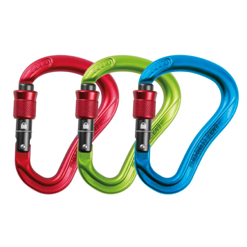 Ocun Eagle HMS Screw karabiner sa bravicom se odlikuje malom težinom. Namenjen je za korišćenje sa spravicama za osiguravanje. Ergonomski dizajn omogućava lako zaključavanje i otključavanje jednom rukom. Gornji profil karabinera je napravljen tako da olakšava prolazak užeta.